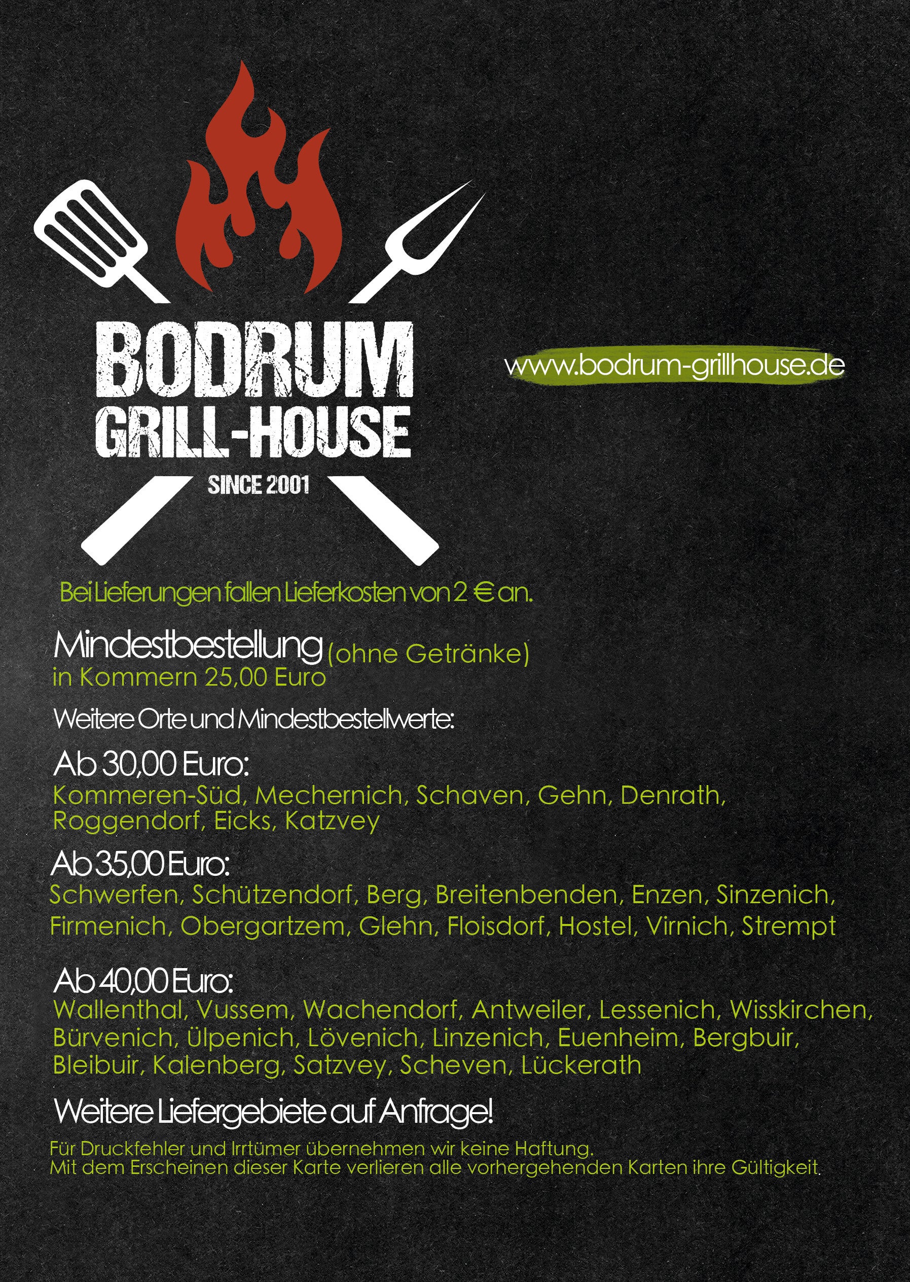 Hinweis: Bodrum Grill House übernimmt keine Haftung für Unverträglichkeiten jeglicher Art.